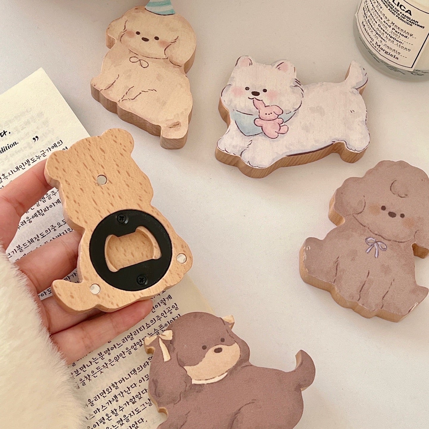 Cartoon Dog Beech Wood Fridge Magnet Bottle Opener