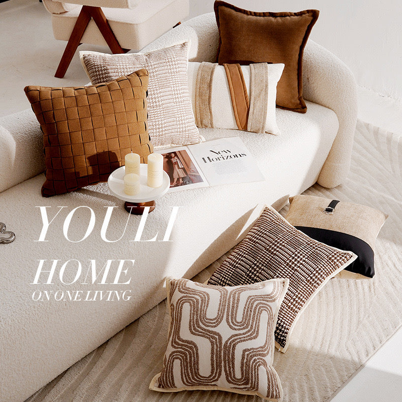 This cushion cover features soft beige tones and retro wavy embroidery patterns, adding a touch of artistry to your living space.