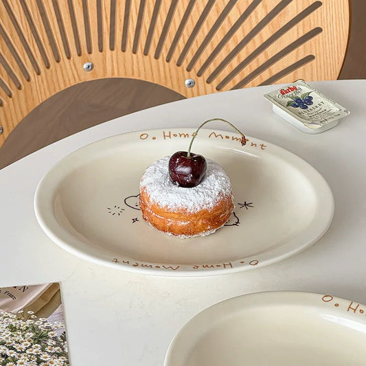 Cream Line Cat Bear Bunny Doodle Ceramic Plate