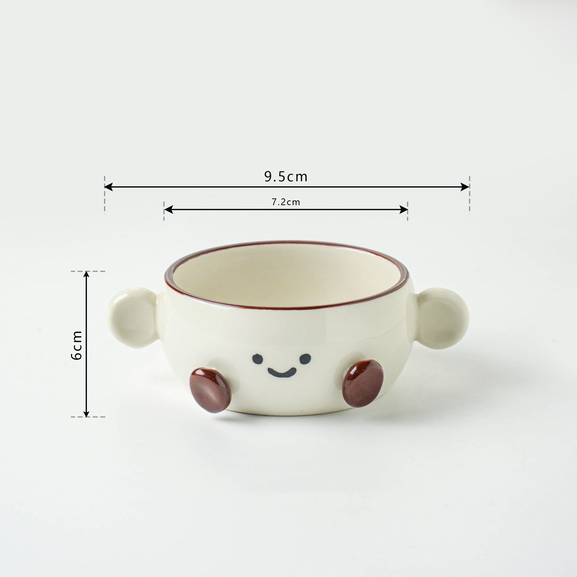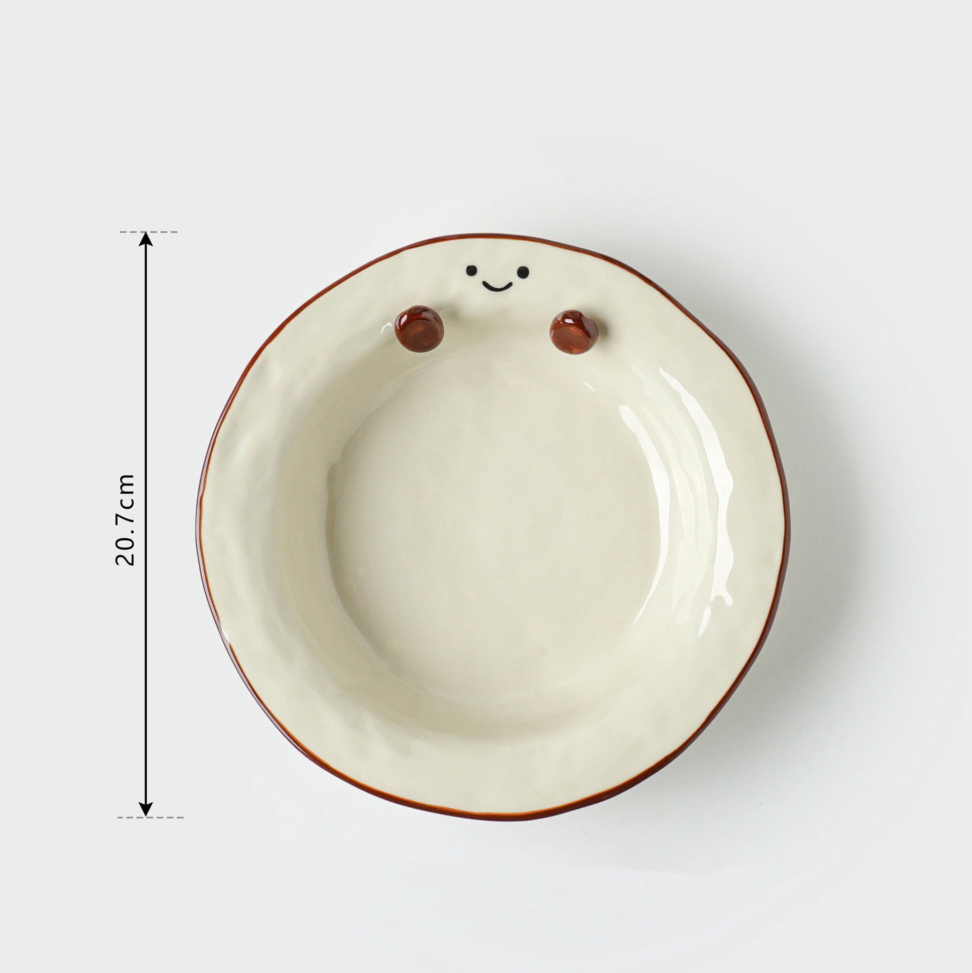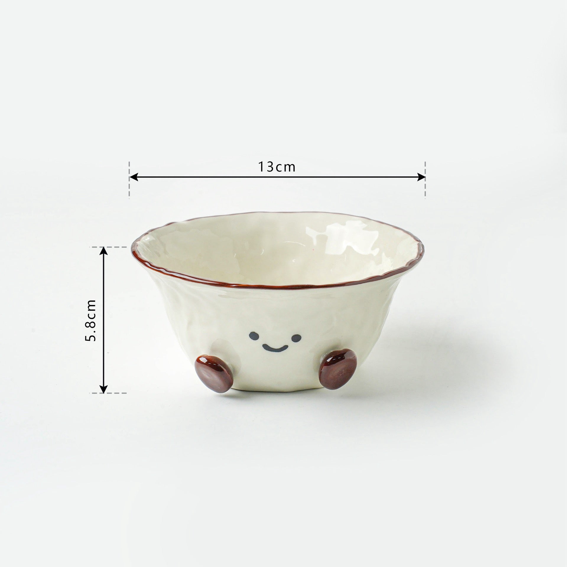 The Smiley Bean Ceramic Tableware Series brings joy to your dining table with its heartwarming smiley faces and cute 3D “bean feet.” Featuring a creamy glaze with hand-painted brown rims, each piece radiates cozy charm. Available in multiple styles — plate, bowl, cup, and mug — to mix and match freely for everyday dining.