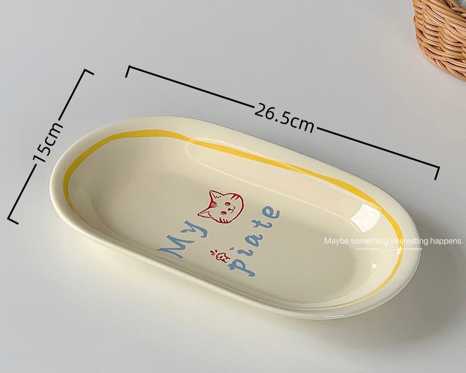 This cream-colored cat doodle ceramic series brings warmth and playfulness to your table. Featuring adorable hand-drawn cat illustrations paired with casual English phrases, this set adds a charming vibe to everyday meals. Available in a mug, oval plate, round plate, and bowl – each item can be purchased individually or as a set.