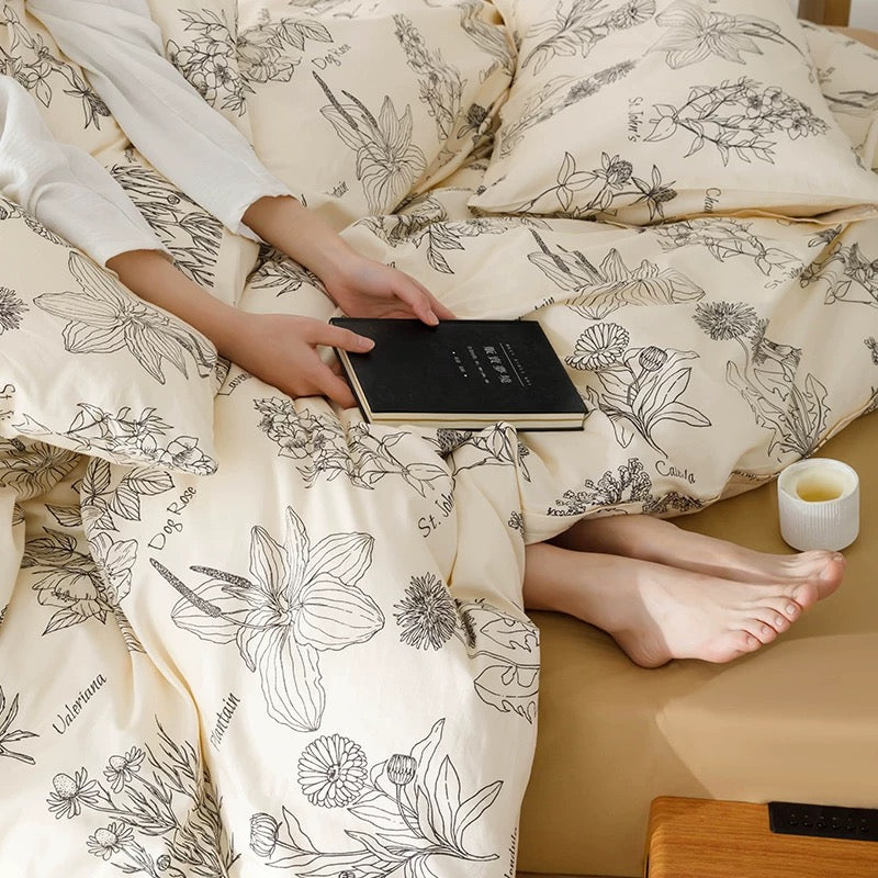 Perfect for adding an understated artistic touch to your bedroom, this French Line-Drawn Botanical Cotton Bedding Set combines style and serenity for the ultimate restful retreat.