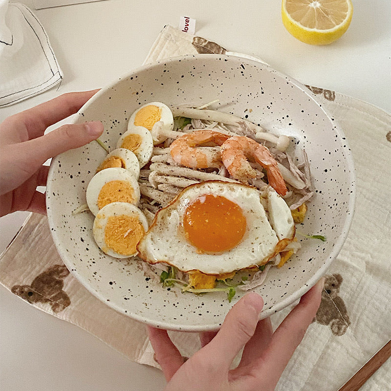 This Japanese-style Ink-Splashed Ceramic Plate stands out with its unique design and high-quality ceramic material. The surface features an ink-splashed design that adds an artistic touch and uniqueness. Perfect for serving a variety of dishes, whether it’s salad, noodles, or breakfast, this bowl elevates the dining experience.