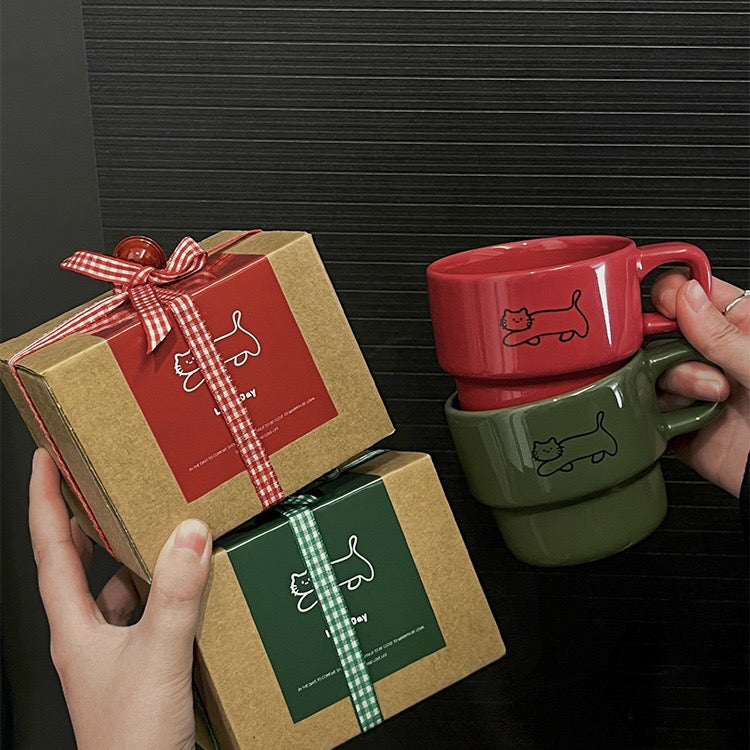The Cute Walking Kitty Mug features an adorable hand-drawn style kitty happily strolling across the cup. Available in Cherry Red and Forest Green, each color brings its own cozy and charming vibe. Perfect for brightening your daily routine or gifting to someone special.