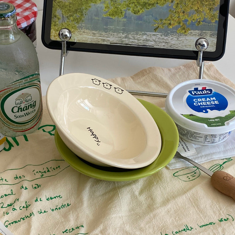 - Playful Design: The small animal illustrations and "Happy" text inside the bowl add a joyful touch, making it ideal for both family and children's use.