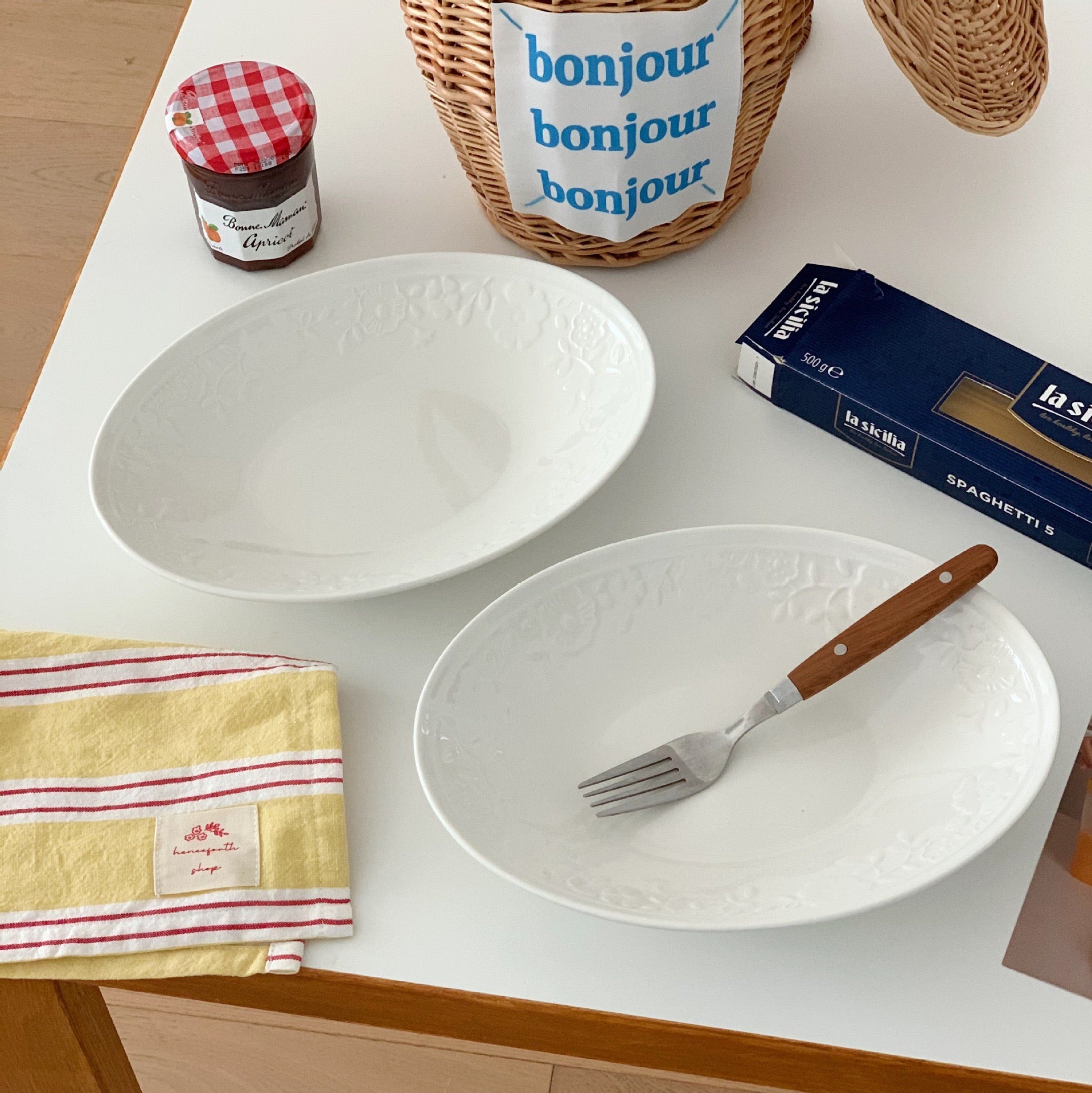 Elegant White Embossed Oval Ceramic Plate